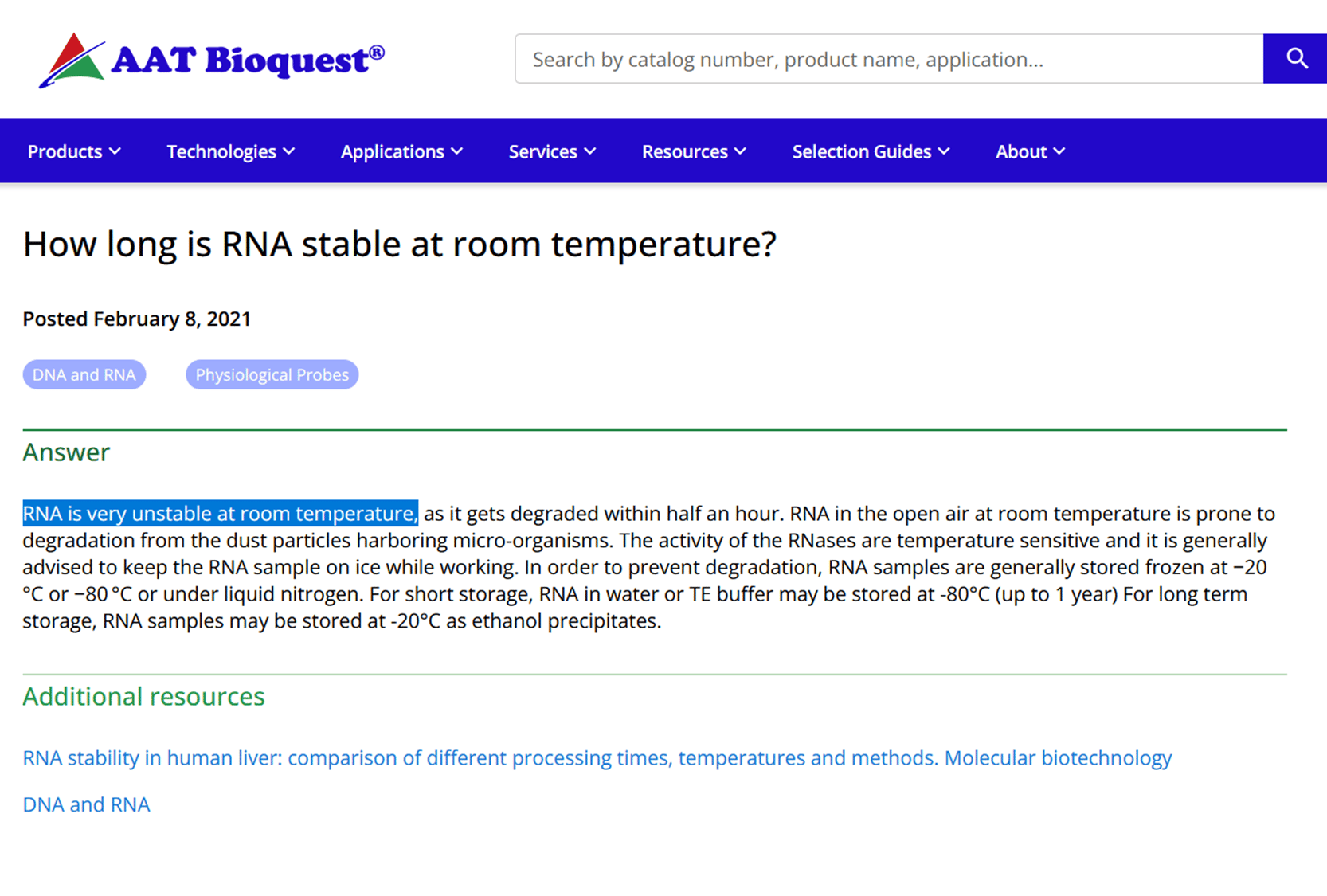 The issue is that several companies have produced products that enhance RNA stability for long-term storage1,2 and therefore claim in online blogs that RNA is highly fragile.