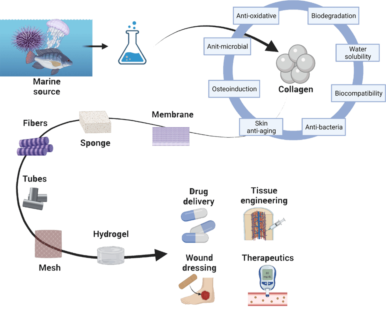 Meison Furtado, L., et al., 2022. Development of fish collagen in tissue regeneration and drug delivery. Engineered Regeneration, 3(3), pp.217–231. doi:10.1016/j.engreg.2022.05.002.