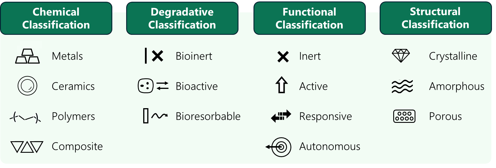 Mahdi, M., et al., 2024. Classification of biomaterials and their applications. Journal of Port Science Research, 7(3), pp.281–299. doi:10.36371/port.2024.3.7281.
