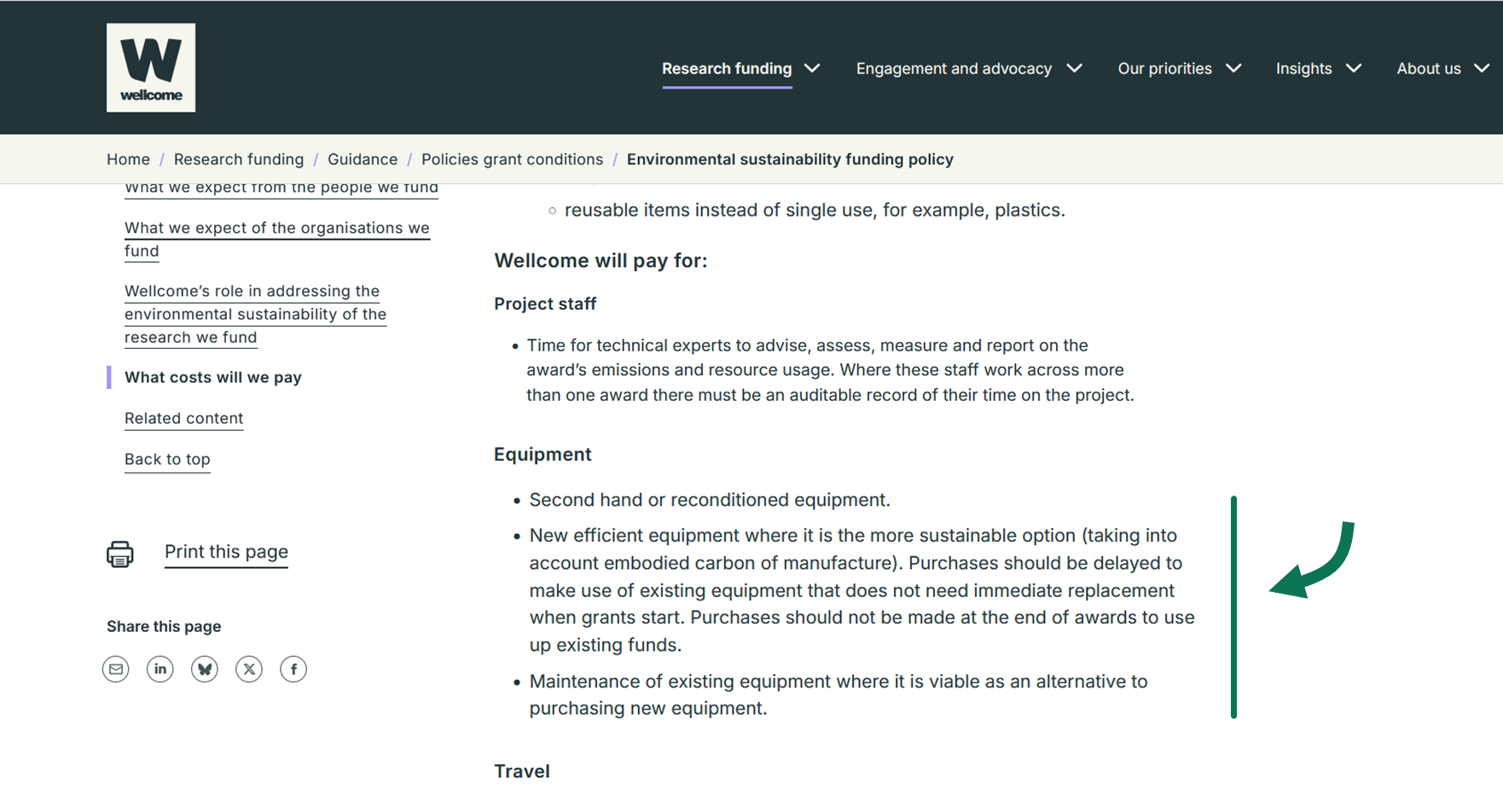 > Importantly, Wellcome Trust UK even provides additional funding to offset the costs of more sustainable equipment.