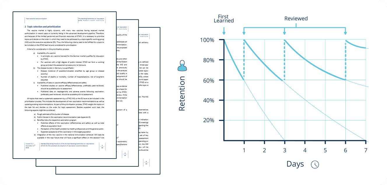 Protocols can be long and nuanced. Make sure you understand why you do each step and that you remember it sufficiently well to be able to focus on the changes. We often underestimate how quickly we forget - so making a plan and believing you don’t need to take notes or that you can implement changes on the fly is not a good idea. As shown in the diagram about spaced repetition, we generally want to have the original protocol properly established before making changes.