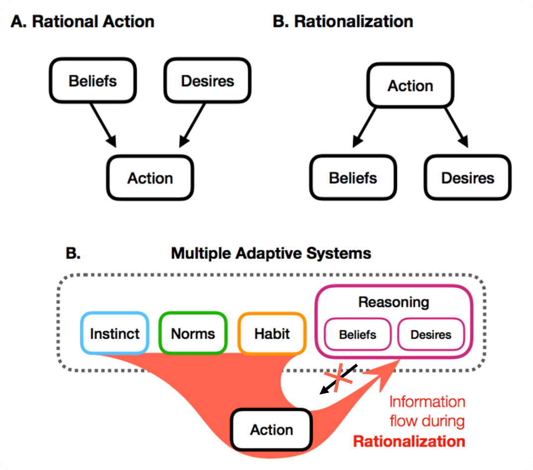 Cushman, F., et al., 2020. Rationalization is rational. Behavioral and Brain Sciences, 43, e28. doi:10.1017/S0140525X19001730.