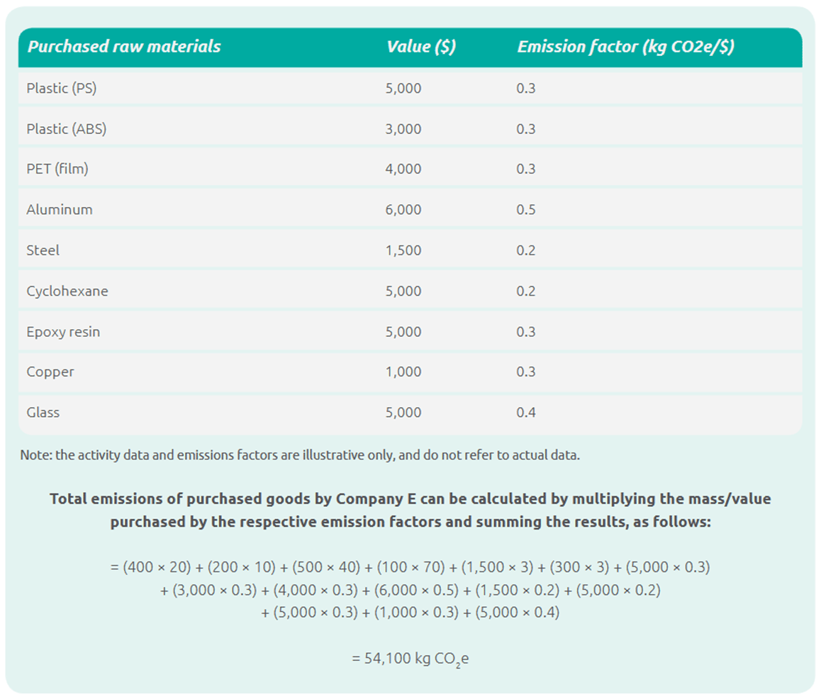 Click to enlarge. The GHG Protocol has some guidance on how to calculate spend-based footprints. This is also why it’s so often said that companies aim to cover 90% of their suppliers by spend.