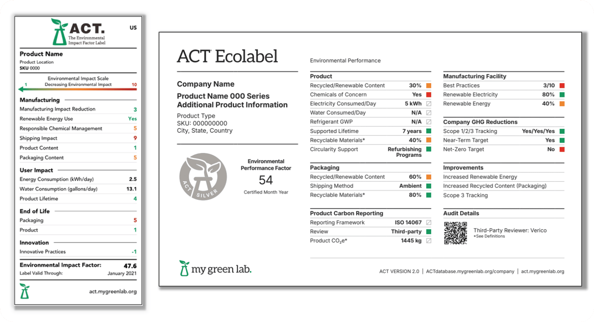 On the right is the ACT Ecolabel 1.0, and on the left its successor. You can read more about the ACT Ecolabel 2.0 here.