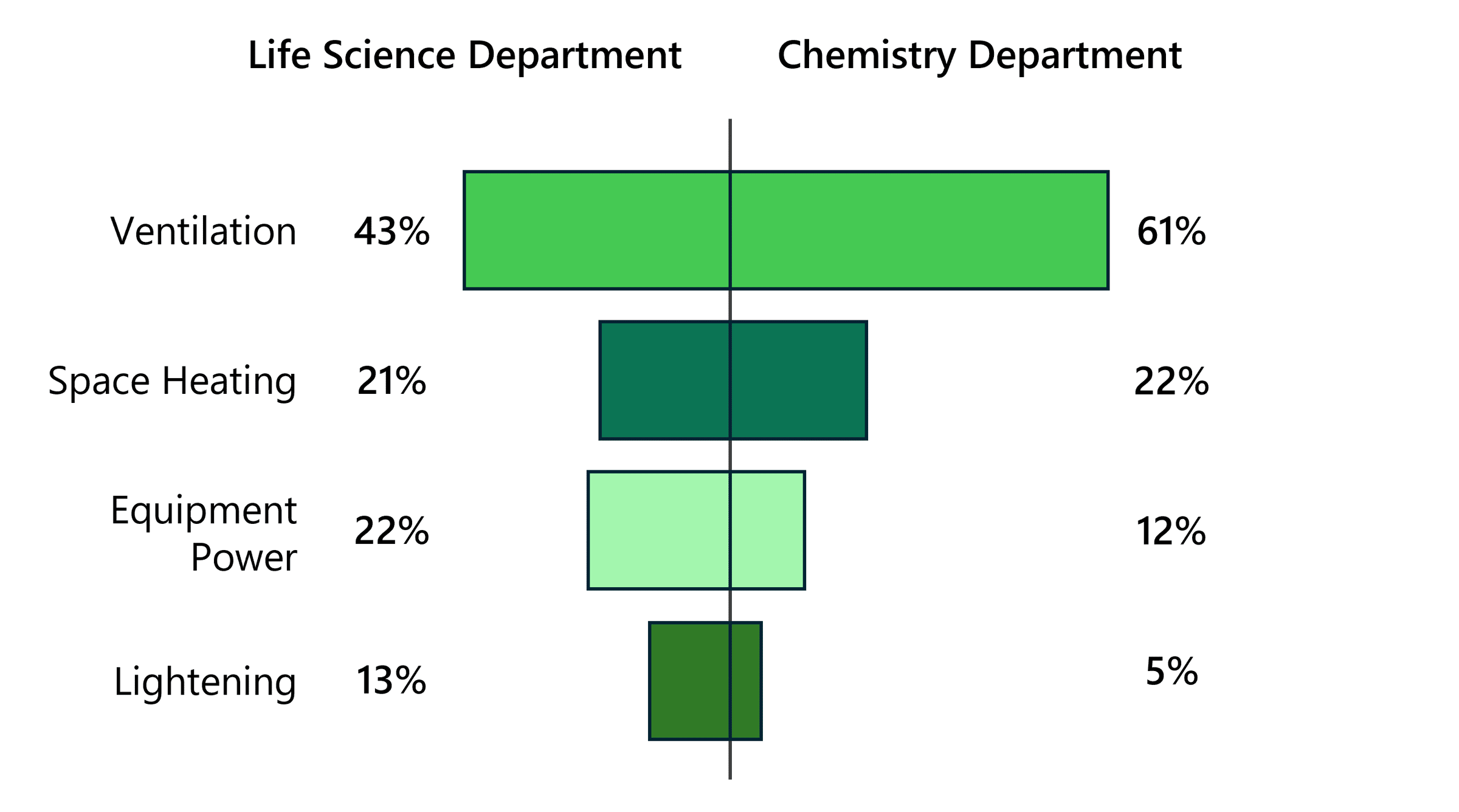 Depicted is the variability of energy consumption depending on lab-type. For example, consider that a chemical might have many more fume hoods. This is from a report “Green Labs – Lab Energy 2019” from the university of Cambridge. The Life Science Department was located in York and the Chemistry Department in Manchester.