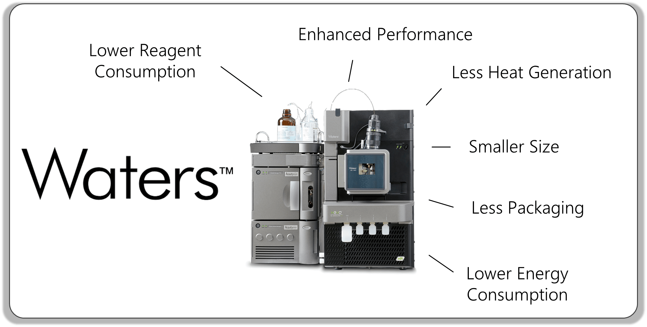 By the same token, Waters uses only one energy-saving and maintenance-friendly backing pump.