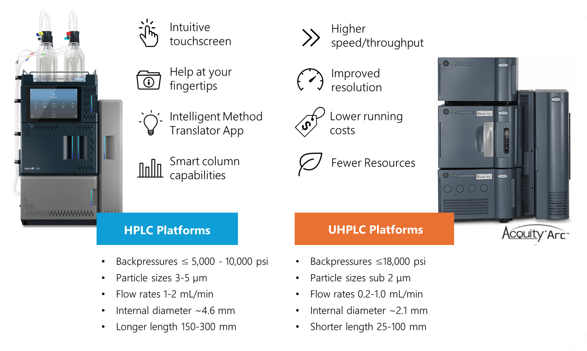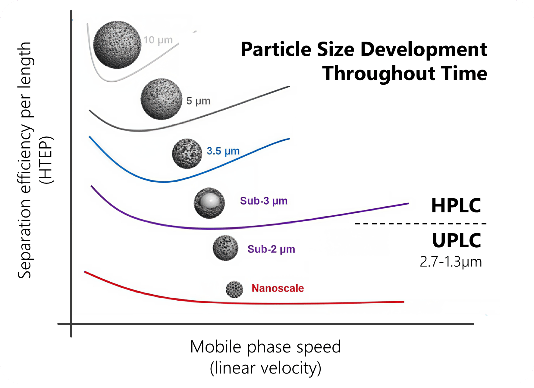 Moving from HPLC to UPLC essentially meant using smaller column particles to enable higher flow rates and reduced band broadening.