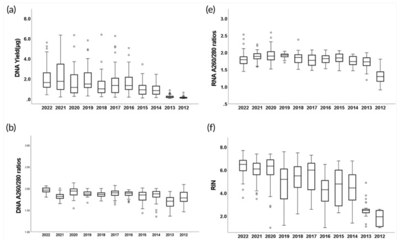 22. Stephenson, N.L., et al., 2020. Quality assessment of RNA in long-term storage: The All Our Families biorepository. PLoS One, 15(12), e0242404. doi:10.1371/journal.pone.0242404.