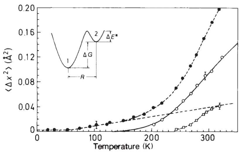 24. Doster, W., et al., 1989. Dynamical transition of myoglobin revealed by inelastic neutron scattering. Nature, 337, pp.754–756. doi:10.1038/337754a0.