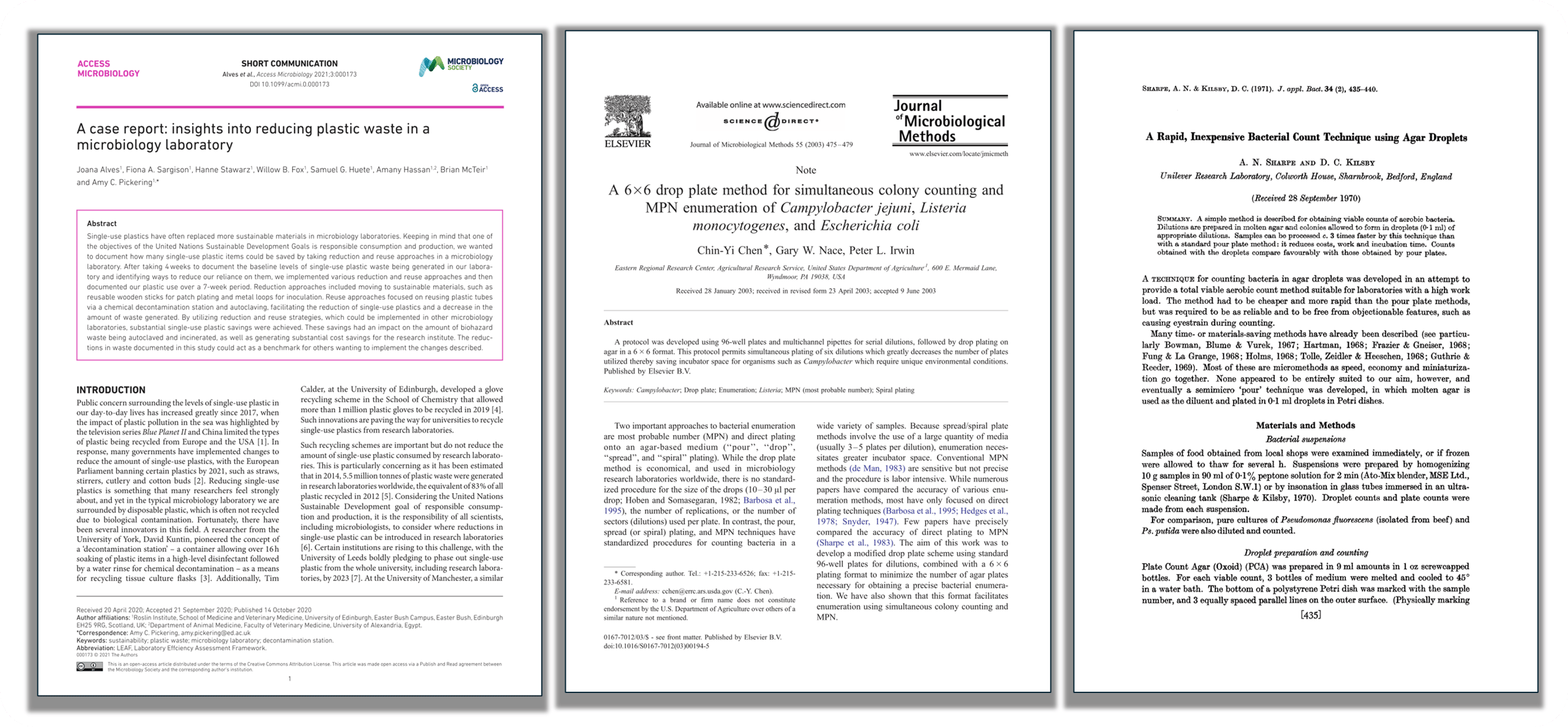 Alves, J., et al., 2020. A case report: insights into reducing plastic waste in a microbiology laboratory. Access Microbiology, 3(3), 000173. doi:10.1099/acmi.0.000173.