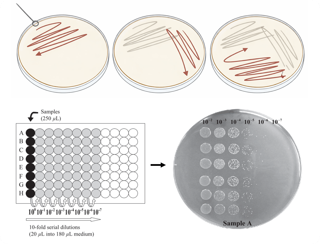 In essence, instead of streaking bacteria across an entire plate, one would pipette dilutions directly onto the plate using a pipette.