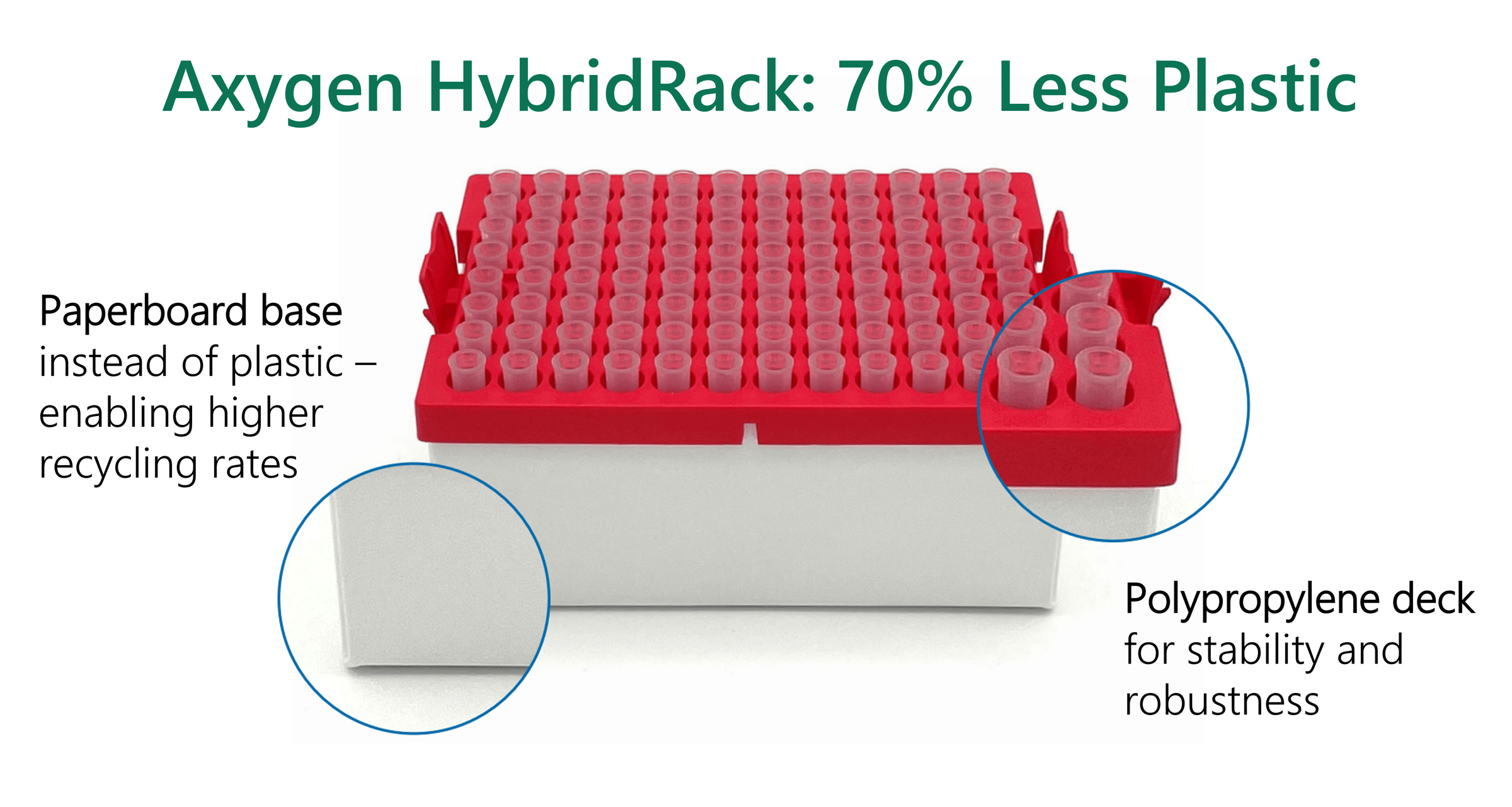 And beyond the 70% less plastic, the tips themselves have been dematerialized compared to traditional Axygen tip racks.