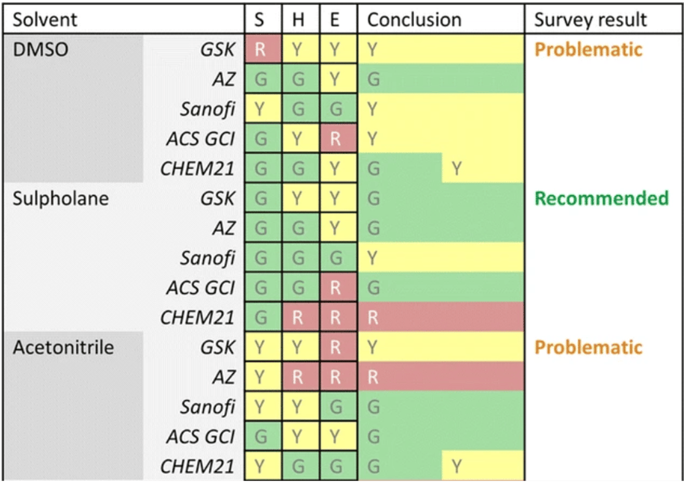 While I have shared some insights in how to avoid hazardous vapors in HPLC, this table provides a simplified environmental (E), health (H), and safety (S) rankings for various solvents. If you want to learn more about green chemicals, do so here.