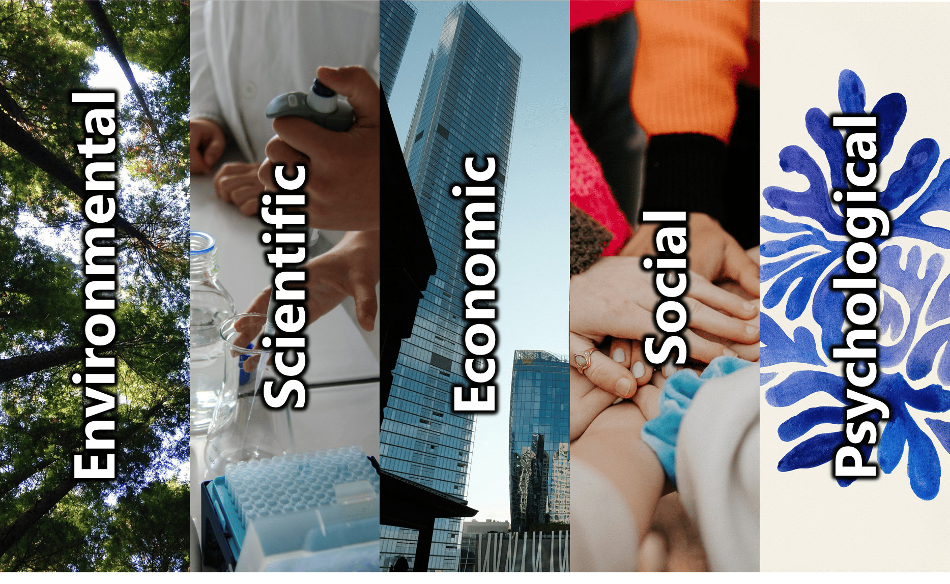 This involves scientific, economic, and psychological aspects, not just environmental ones: